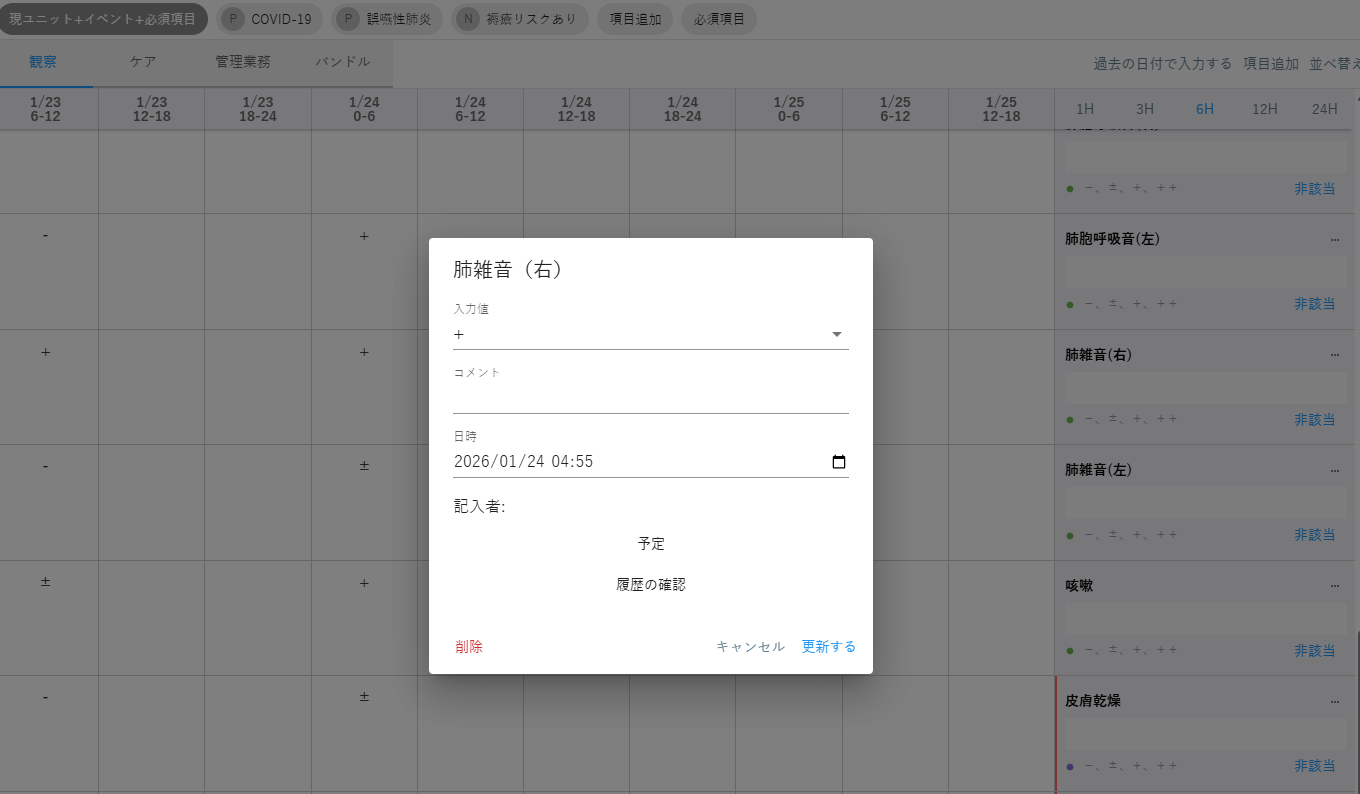 チームコンパスは、メディスマスターに基づいた選択式の看護記録システム。必要な項目に沿っ て選ぶだけで思考が自然と整理され、端的なコメントを添えるだけで記録が形になるよう設計さ れています。